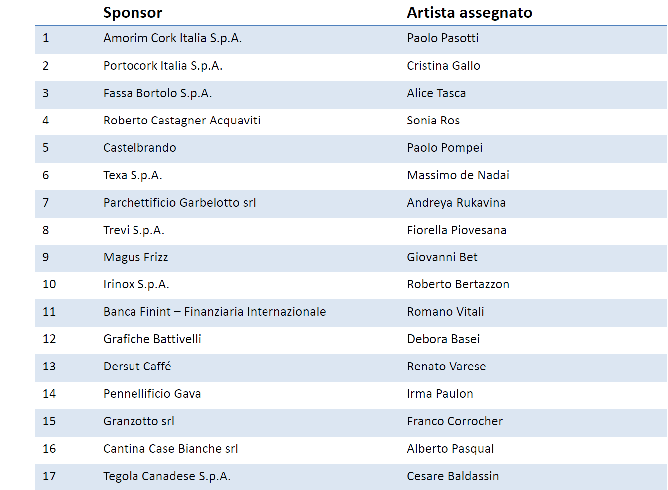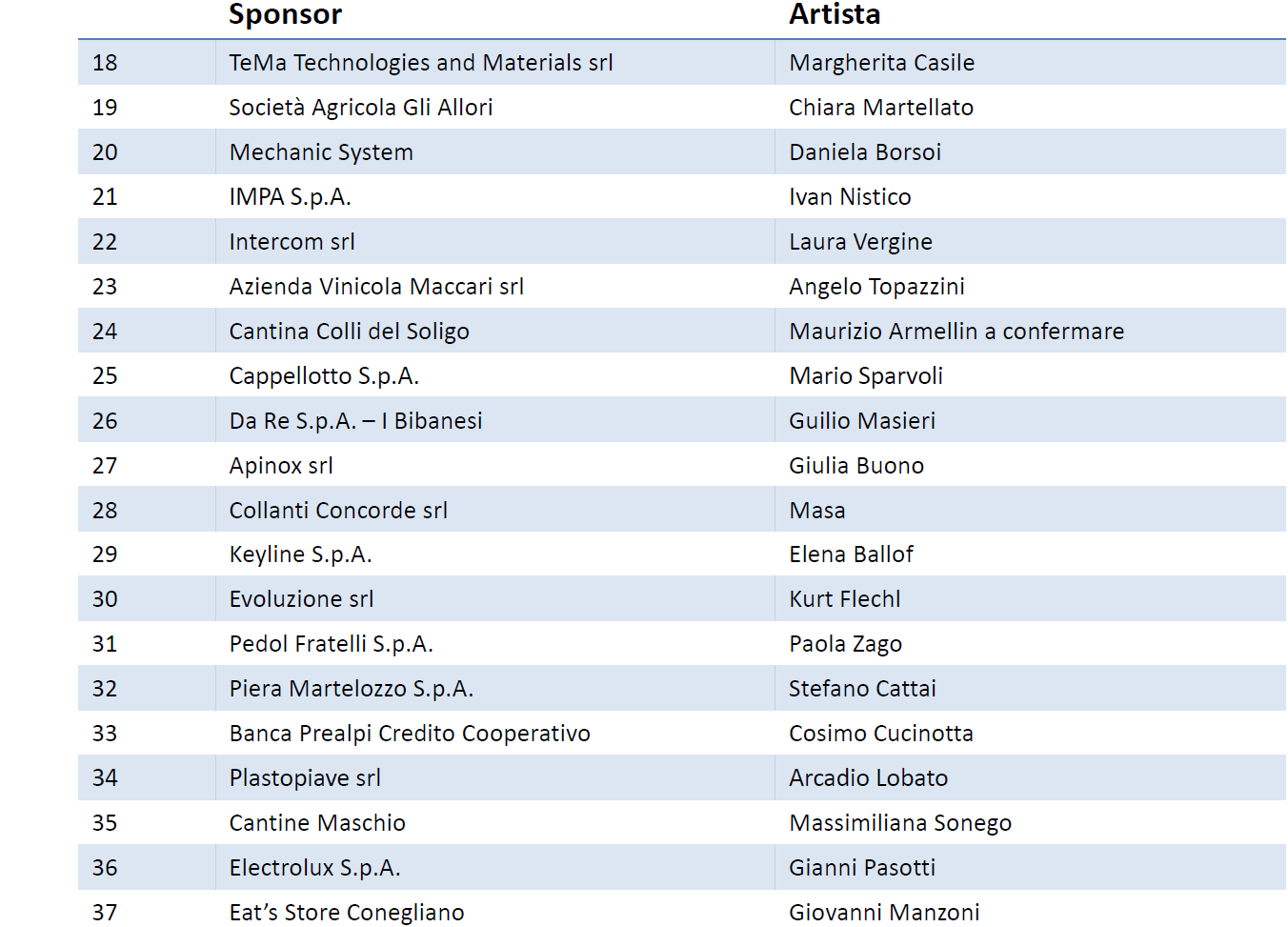Le aziende hanno aderito alla richiesta del Rotary Club con una donazione mentre in parallelo gli artisti coinvolti, abbinati tramite sorteggio alle stesse, stanno realizzando la personalizzazione di una Magnum di Prosecco DOCG senza etichetta. A partire da un prodotto identificativo del territorio, si ispirano ai valori dell’azienda cui sono associati per realizzare un’opera d’arte, che assume il valore di un grande gesto di solidarietà.