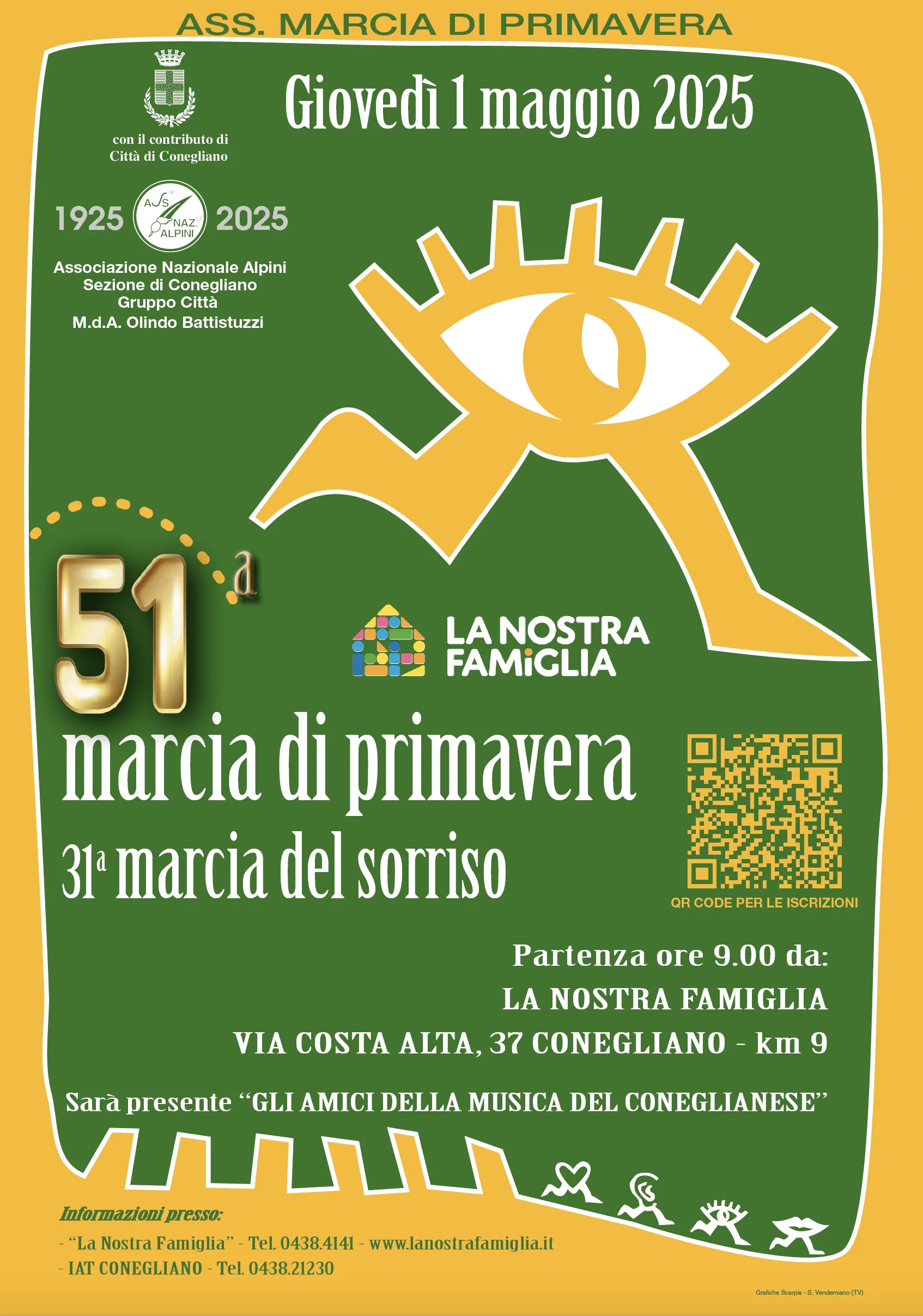 1 maggio 2025: gli Alpini e La Nostra Famiglia anche quest’anno organizzano la ormai storica Marcia di Primavera - Marcia del Sorriso sulle colline attorno Conegliano.