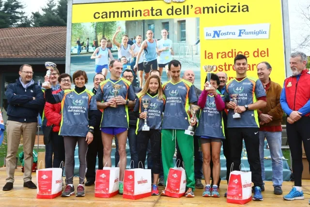 camminata 2017 premiazioneI più veloci nel tragitto di 12 chilometri che si snoda tra Bosisio Parini, Merone e Rogeno sono stati Giuseppe Molteni (44’14’’) e Stefano Rigamonti (45’57’’), entrambi di Rogeno, seguiti dal campione greco sui 10.000 Nicodemos Nicolaces (47’03”). La prima donna classificata, sempre per la 12km, è stata l’olimpionica greca Sofia Riga (49’39’’), mentre al secondo posto si è piazzata Carmen Piani di Lecco (54’31’’) e al terzo Raffaella Colzani di Giussano (57’25’’). La prima carrozzina a tagliare il traguardo è stata quella di Barbara Molteni di Rogeno, mentre il primo bimbo è stato Federico Besana di Molteno (59’55’). Tra i gruppi numerosi, spiccano i 518 amici di Angela di Longone al Segrino, i 370 amici di Giovanni e Mario di Suello e i 363 amici dell'oratorio di Bosisio Parini. Gli atleti sono stati premiati dai rappresentanti istituzionali del territorio.
