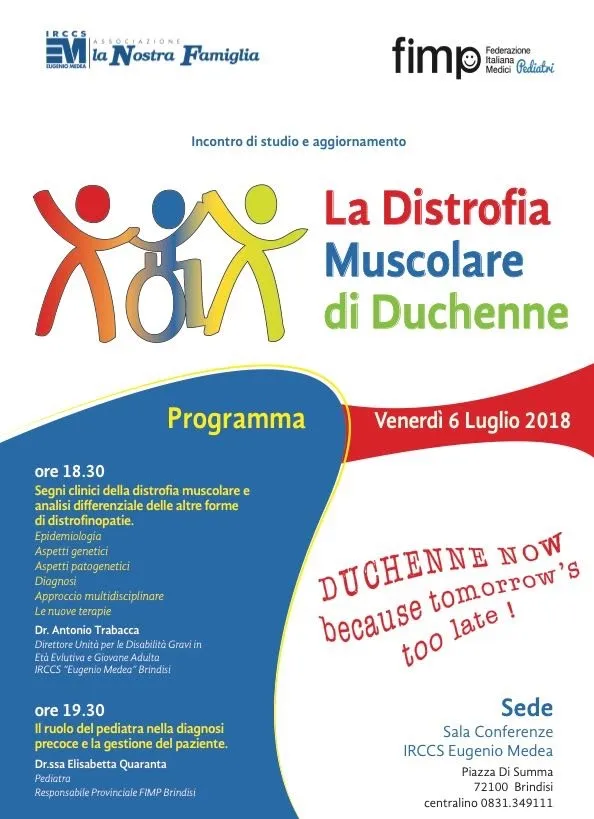 I medici pediatri di tutta la provincia di Brindisi si incontrano presso l’Istituto Scientifico Medea per un pomeriggio di approfondimento sulla Distrofia Muscolare di Duchenne, una malattia muscolare, ereditaria e progressiva, causata dalla mancanza di distrofina.