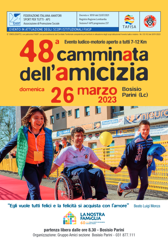 L’edizione numero 50 della Camminata, che si terrà a Bosisio Parini il 6 aprile, è stata presentata il 7 gennaio presso la sede de La Nostra Famiglia.